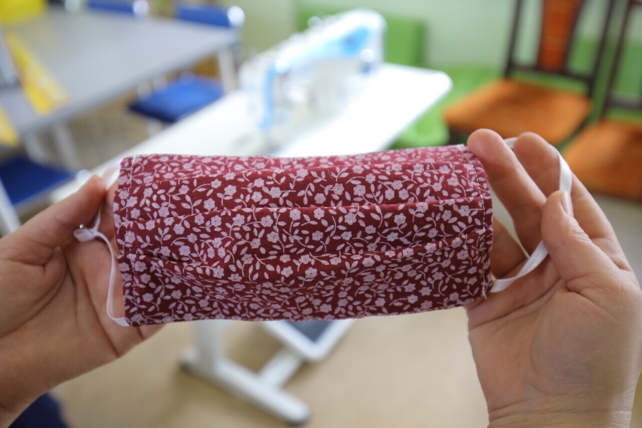 Gdańsk, Zespół Szkół Ogólnokształcących nr 8. Imigranci szyją maseczki ochronne.