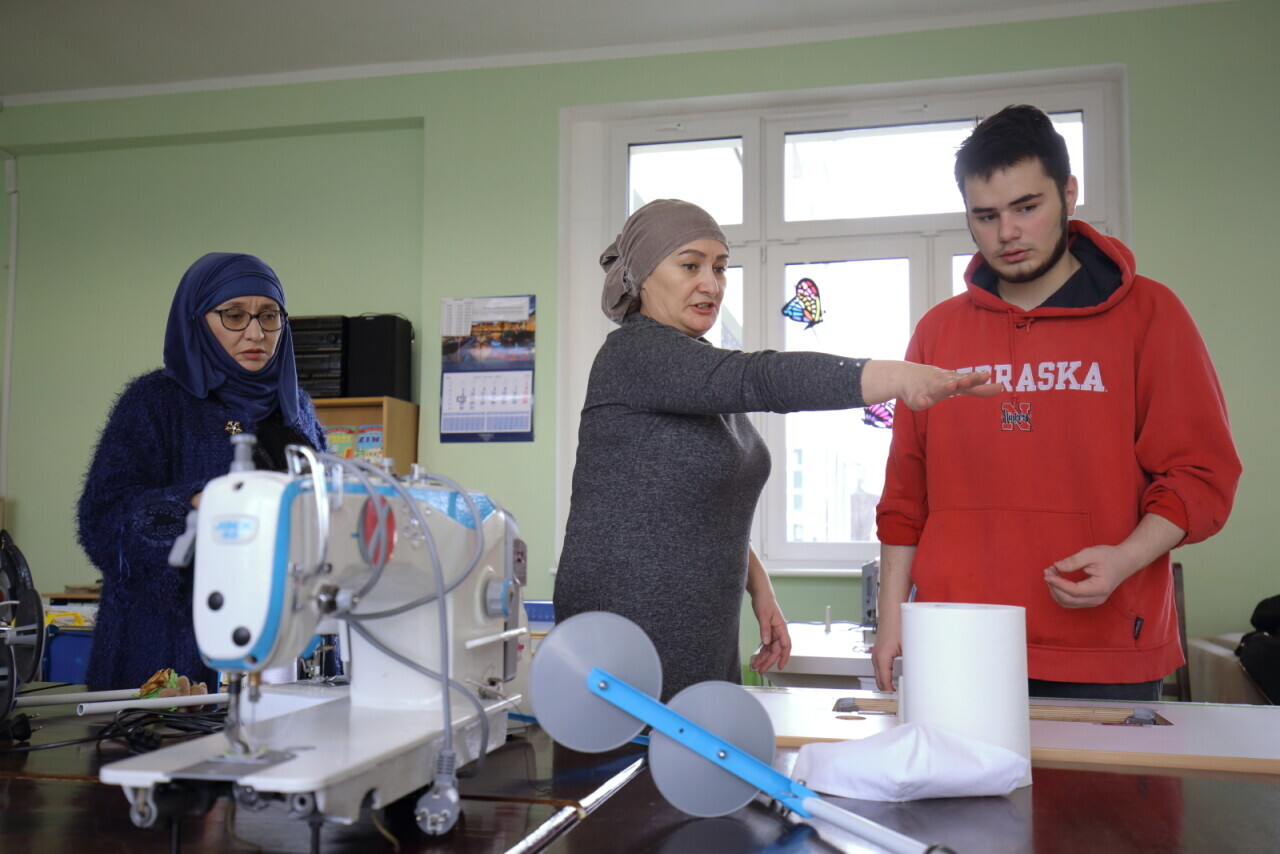 Gdańsk, Zespół Szkół Ogólnokształcących nr 8. Imigranci szyją maseczki ochronne.