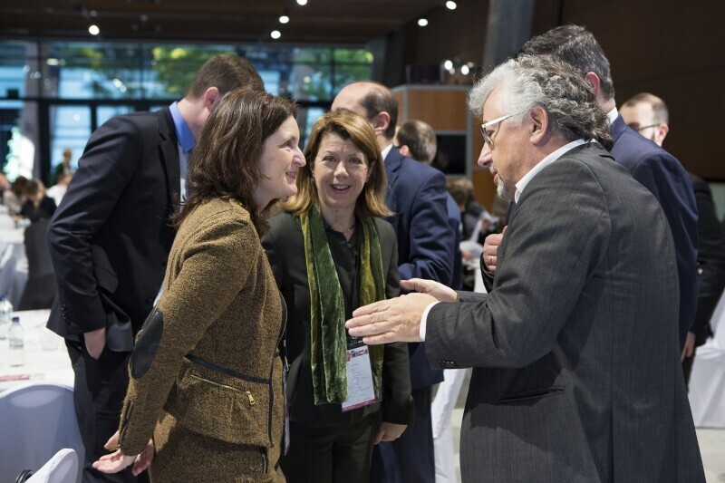Inauguracja konkursu grantowego European Social Innovation Competition 2015. Gdańsk, Europejskie Centrum Solidarności. Nz. Dyrektor Kerstin Jorna z Dyrekcji Generalnej ds. Rynku Wewnętrznego i Usług Komisji Europejskiej i Pełnomocnik Stowarzyszenia Gdański Obszar Metropolitalny ds. ekonomii społecznej Piotr Wołkowiński