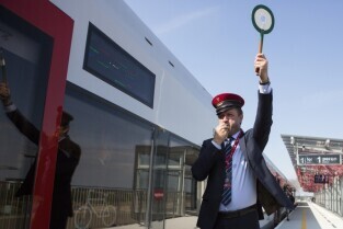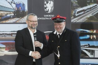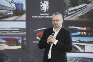 Inauguracja nowej linii Pomorskiej Kolei Metropolitalnej (PKM). Gdańsk, Port Lotniczy im. Lecha Wałęsy. Nz. Piotr Bałtroczyk