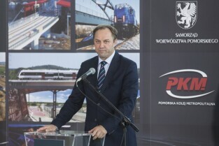 Inauguracja nowej linii Pomorskiej Kolei Metropolitalnej (PKM). Gdańsk, Port Lotniczy im. Lecha Wałęsy. Nz. Marszałek Woj. Pomorskiego Mieczysław Struk