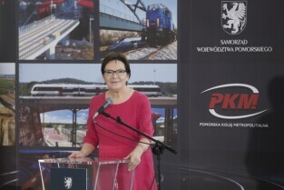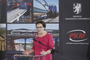 Inauguracja nowej linii Pomorskiej Kolei Metropolitalnej (PKM). Gdańsk, Port Lotniczy im. Lecha Wałęsy. Nz. Premier RP Ewa Kopacz
