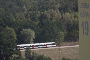 Inauguracja nowej linii Pomorskiej Kolei Metropolitalnej (PKM). Przejazd szynobusu po nasypie przy ul. Słowackiego. Widok z osiedla Niedźwiednik w Gdańsku