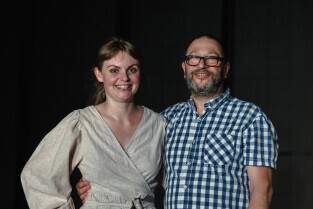 Gdańsk, ul. Partyzantów. Inauguracja działalności Sceny Artystycznej Nowa Synagoga. Premiera spektaklu "Yotam. Studium o matce". Nz. Krzysztofa Gomółka-Pawlicka i Marek Brand