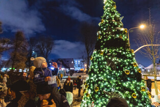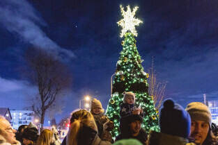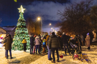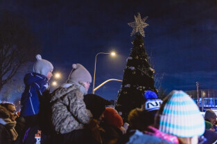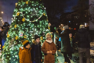 Gdańsk, ul. Damroki 2. Inauguracja dzielnicowej choinki na Jasieniu z udziałem wiceprezydenta Piotra Borawskiego. Obecni byli radnymi dzielnicy Jasień oraz miejscy radni, Beata Jankowiak, Piotr Gierszewski, Przemysław Malak, Michał Hajduk