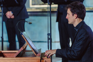 Gdańsk. Inauguracja festiwalu Actus Humanus w kościele św. Jana. Nz. zespół Ensemble Correspondances pod kierownictwem Sébastiena Daucé, organisty i klawesynisty