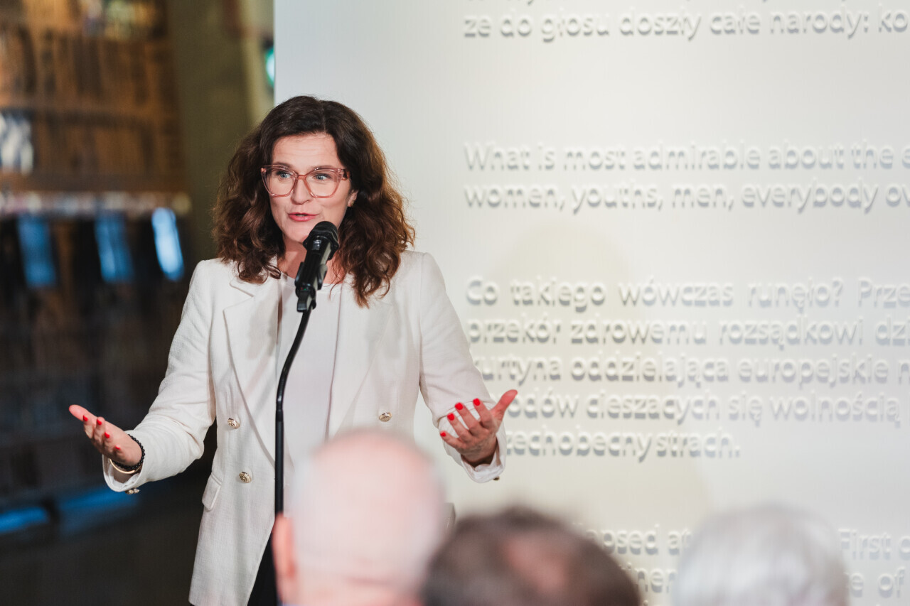 Gdańsk, ECS. Inauguracja i wręczenie ODZNAKI SOLIDARNOŚCI I PRAW CZŁOWIEKA. Nz. Aleksandra Dulkiewicz prezydent Gdańska
