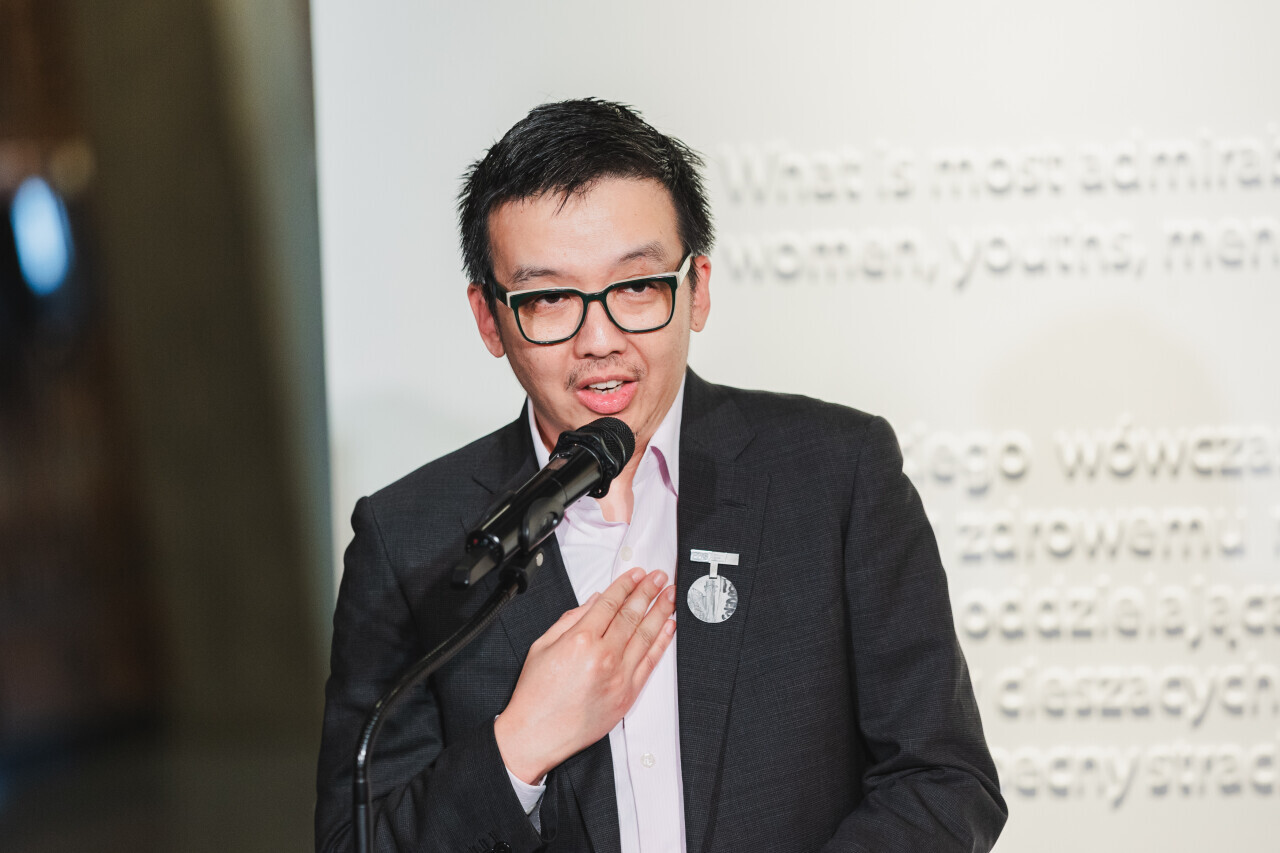 Gdańsk, ECS. Inauguracja i wręczenie ODZNAKI SOLIDARNOŚCI I PRAW CZŁOWIEKA. Nz. Samuel Chu