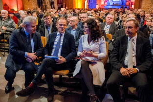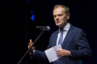 Gdańsk. Inauguracja obchodów Roku Lecha Bądkowskiego w Centrum św. Jana. Nz. Donald Tusk
