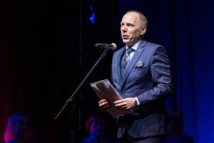 Gdańsk. Inauguracja obchodów Roku Lecha Bądkowskiego w Centrum św. Jana. Nz. marszałek woj. pomorskiego Mieczysław Struk