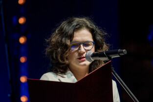 Gdańsk. Inauguracja obchodów Roku Lecha Bądkowskiego w Centrum św. Jana. Nz. Prezydent Gdańska Aleksandra Dulkiewicz