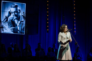 Gdańsk. Inauguracja obchodów Roku Lecha Bądkowskiego w Centrum św. Jana. Nz. Miłosława Kosmulska (wnuczka Lecha Bądkowskiego)