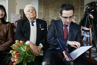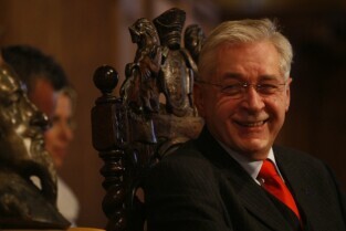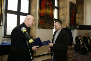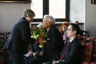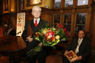 Uroczystość wręczenia Nagrody Naukowej Miasta Gdańska im. Jana Heweliusza. Gdańsk, Ratusz Staromiejski. Nz. prof. Jan Burnewicz z Wydziału Ekonomicznego UG - laureat w dziedzinie nauk humanistycznych