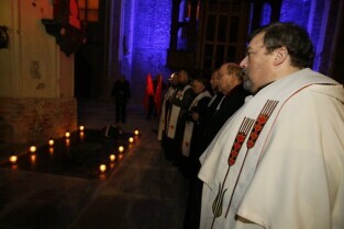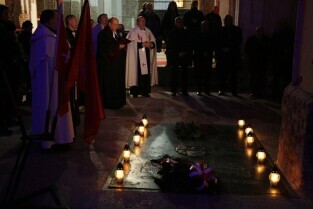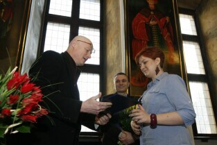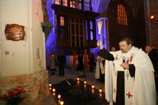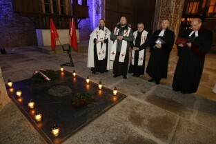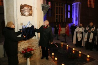 Odsłonięcie tablicy upamiętniającej 400. rocznicę urodzin Jana Heweliusza, która została umieszczona koło grobu astronoma w kościele św. Katarzyny w Gdańsku
