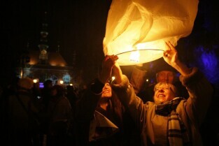 Happenig z okazji inauguracji Roku Jana Heweliusza oraz wypuszczenie 400 lampionów na 400. urodziny Jana Heweliusza. Gdańsk ul. Korzenna