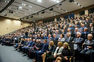 Sala Teatralna budynku Neofilologii Uniwersytetu Gdańskiego. Inauguracja roku akademickiego 2018/2019 Nz.byli rektorzy prof. Marcin Pliński (po prawej) i Andrzej Ceynowa