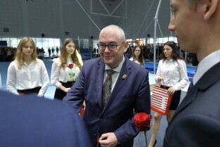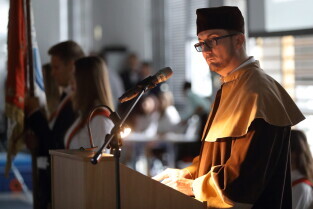 Gdańsk. Akademia Wychowania Fizycznego i Sportu, inauguracja roku akademickiego. Nz. Wiceprezydent Gdańska Piotr Kowalczuk.