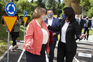 Gdańsk Orunia, Szkoła Podstawowa nr 56. Inauguracja roku szkolnego 2020/2021 połączona z otwarciem miasteczka ruch drogowego. Nz. prezydent Gdańska Aleksandra Dulkiewicz i z-ca prezydenta Gdańska Piotr Kowalczuk