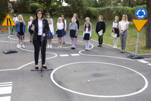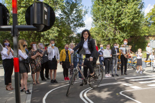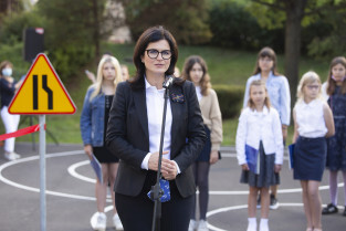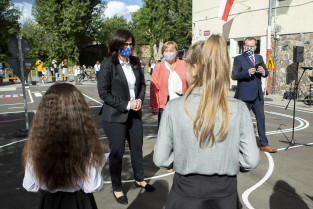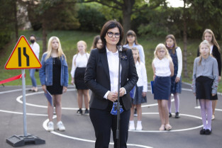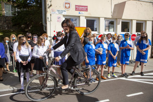 Gdańsk Orunia, Szkoła Podstawowa nr 56. Inauguracja roku szkolnego 2020/2021 połączona z otwarciem miasteczka ruch drogowego. Nz. prezydent Gdańska Aleksandra Dulkiewicz