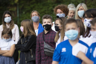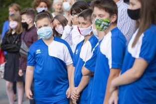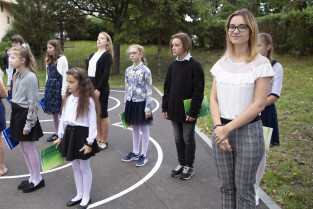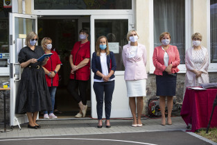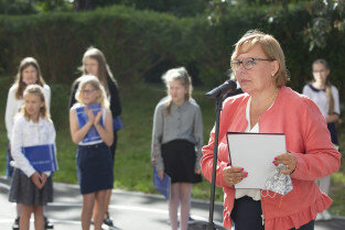 Gdańsk Orunia, Szkoła Podstawowa nr 56. Inauguracja roku szkolnego 2020/2021 połączona z otwarciem miasteczka ruch drogowego. Nz. dyrektor SP 56 Celina Stachowicz