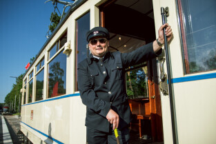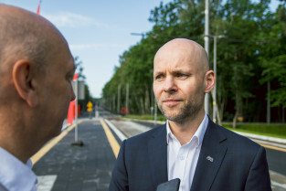 Gdańsk, Stogi. Inauguracja tramwaju po remoncie torowiska na Stogach. Nz. wiceprezydent Alan Aleksandrowicz