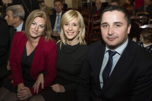 Gdańsk, Ratusz Głównego Miasta. Inauguracyjna sesja Rady Miasta Gdańska, podczas której nowo wybrani radni złożyli ślubowanie oraz wybrali Prezydium Rady. Nz. od lewej Radni: Beata Wierzba, Emilia Lodzińska i Przemysław Ryś