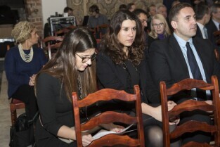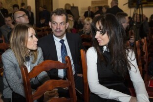 Gdańsk, Ratusz Głównego Miasta. Inauguracyjna sesja Rady Miasta Gdańska, podczas której nowo wybrani radni złożyli ślubowanie oraz wybrali Prezydium Rady. Nz. od lewej Radni: Beata Jankowiak, Magdalena Olek i Piotr Borawski
