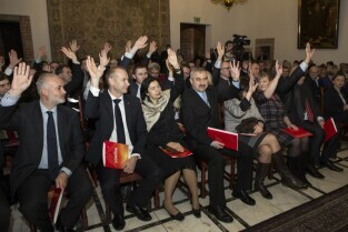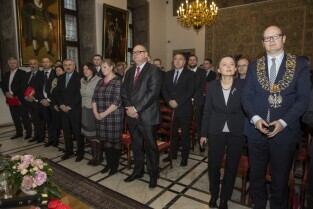 Gdańsk, Ratusz Głównego Miasta. Inauguracyjna sesja Rady Miasta Gdańska, podczas której nowo wybrani radni złożyli ślubowanie oraz wybrali Prezydium Rady. Nz.