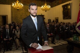 Gdańsk, Ratusz Głównego Miasta. Inauguracyjna sesja Rady Miasta Gdańska, podczas której nowo wybrani radni złożyli ślubowanie oraz wybrali Prezydium Rady. Nz. Łukasz Hamadyk