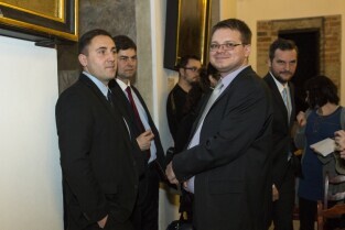 Gdańsk, Ratusz Głównego Miasta. Inauguracyjna sesja Rady Miasta Gdańska, podczas której nowo wybrani radni złożyli ślubowanie oraz wybrali Prezydium Rady. Nz. Z-cy Prezydenta Gdańska Andrzej Bojanowski i Maciej Lisicki