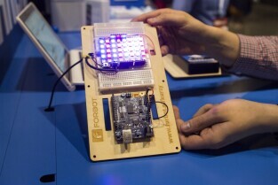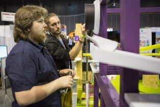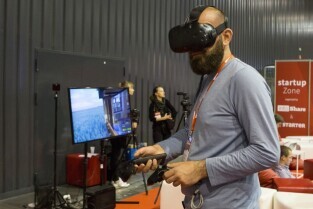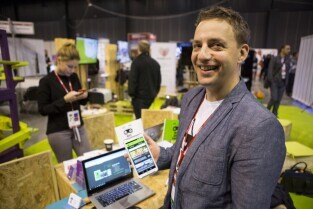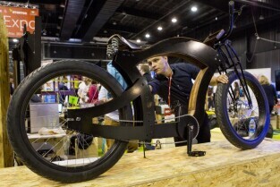 InfoShare 2016 - Konferencja i targi IT. Gdańsk, Amber Expo. Nz. Rower - produkt startupu Vasari i jego konstruktor Daniel Rybiński