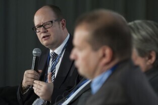 Prezydent Gdańska Paweł Adamowicz bierze udział w panelu dyskusyjnym pt. "Inteligentne miasta. Wyzwania dla rozwoju Europy" w ramach Europejskiego Forum Nowych Idei. W dyskusji biorą udział również: Joost van Iersel, Jose Luis Angoso, Benjamin R. Barber, Dejan Cvetković (na zdjęciu). Panel prowadzi Anya Margaret Ogorkiewicz. Sopot, Hotel Sheraton
