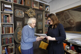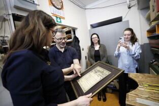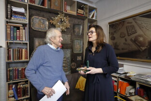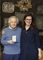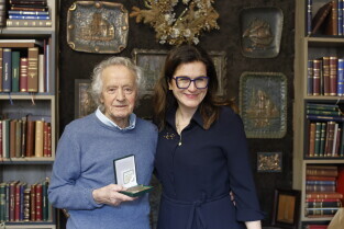 Gdańsk.Introligator Władysław Chumowicz otrzymał Medal Prezydenta Miasta Gdańska. Medal wręczyła prezydent Gdańska Aleksandra Dulkiewicz.