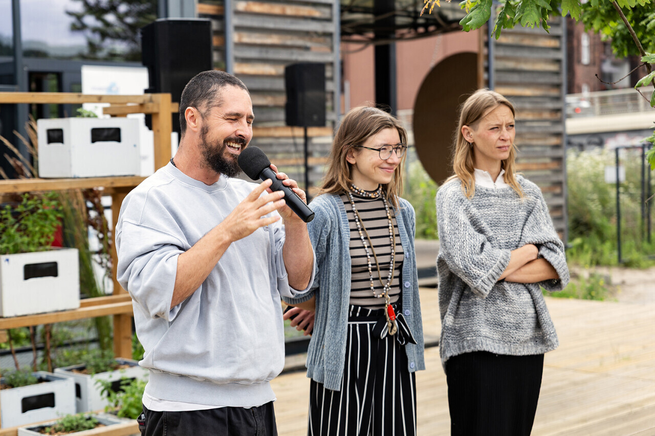 Gdańsk. Powstały z inicjatywy 100czni projekt Huba - ekologiczna przestrzeń miejskiego eksperymentu, edukacji i ogrodnictwa na terenach postoczniowych, wkracza w nowy etap rozwoju - współpracy z miejską instytucją InvestGDA. Współpraca koncentruje się na rozwoju zielonych technologii, miejskich ekosystemów oraz edukacji w duchu gospodarki obiegu zamkniętego. Współpraca ogłoszona została wraz z ustawieniem kontenera, który pełnić będzie funkcję zamkniętego systemu do uprawy grzybów jadalnych. O współpracy opowiadali: Kuba Łukaszeswki, 100cznia; Paweł Orłowski, prezes zarządu InvestGDA, Piotr Grzelak, zastępca prezydent Gdańska ds. zrównoważonego rozwoju i gospodarki oraz autorki projektu Blanka Byrwa, architektka i badaczka oraz Michalina Jasińska, aktywistka i ogrodniczka miejska.
