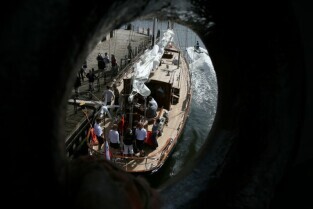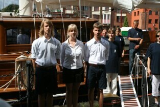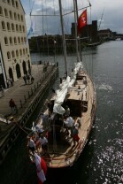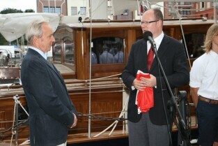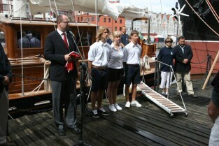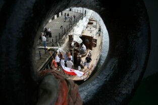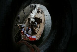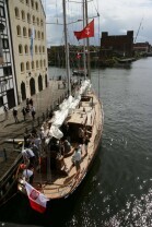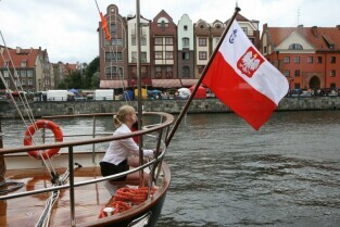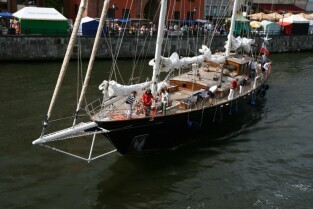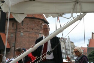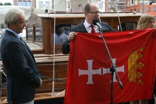 Gdańsk. Wciągnięcie bandery na nowy jacht "Polski Hak"