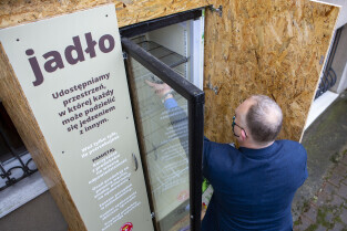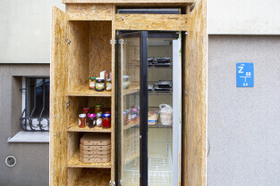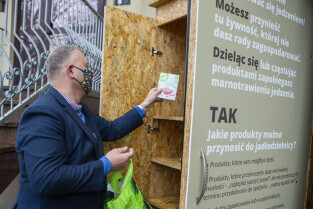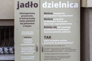 Otwarcie JadłoDzielnicy, pierwszego tego typu miejsca w tej części Gdańska, w którym będzie można pozostawić żywność, której nie uda nam się zjeść. Gdańsk Migowo, kościół parafialny Miłosierdzia Bożego