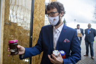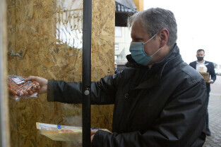 Otwarcie JadłoDzielnicy, pierwszego tego typu miejsca w tej części Gdańska, w którym będzie można pozostawić żywność, której nie uda nam się zjeść. Gdańsk Migowo, kościół parafialny Miłosierdzia Bożego. Nz. Zastępca Przewodniczącego Zarządu Dzielnicy Piecki-Migowo Grzegorz Giżewski