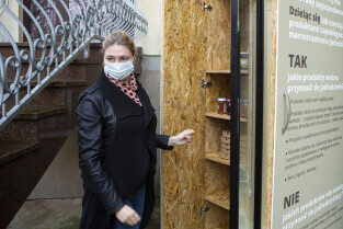 Otwarcie JadłoDzielnicy, pierwszego tego typu miejsca w tej części Gdańska, w którym będzie można pozostawić żywność, której nie uda nam się zjeść. Gdańsk Migowo, kościół parafialny Miłosierdzia Bożego. Nz. właściciel restauracji Fresco Lunch & Restaurant Morena Daniel Sołowiej