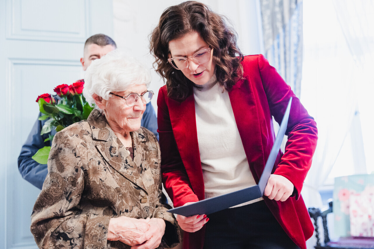 Gdańsk. Jadwiga Burczyk ma 100 lat. Solenizantkę odwiedziła Aleksandra Dulkiewicz prezydent Gdańska