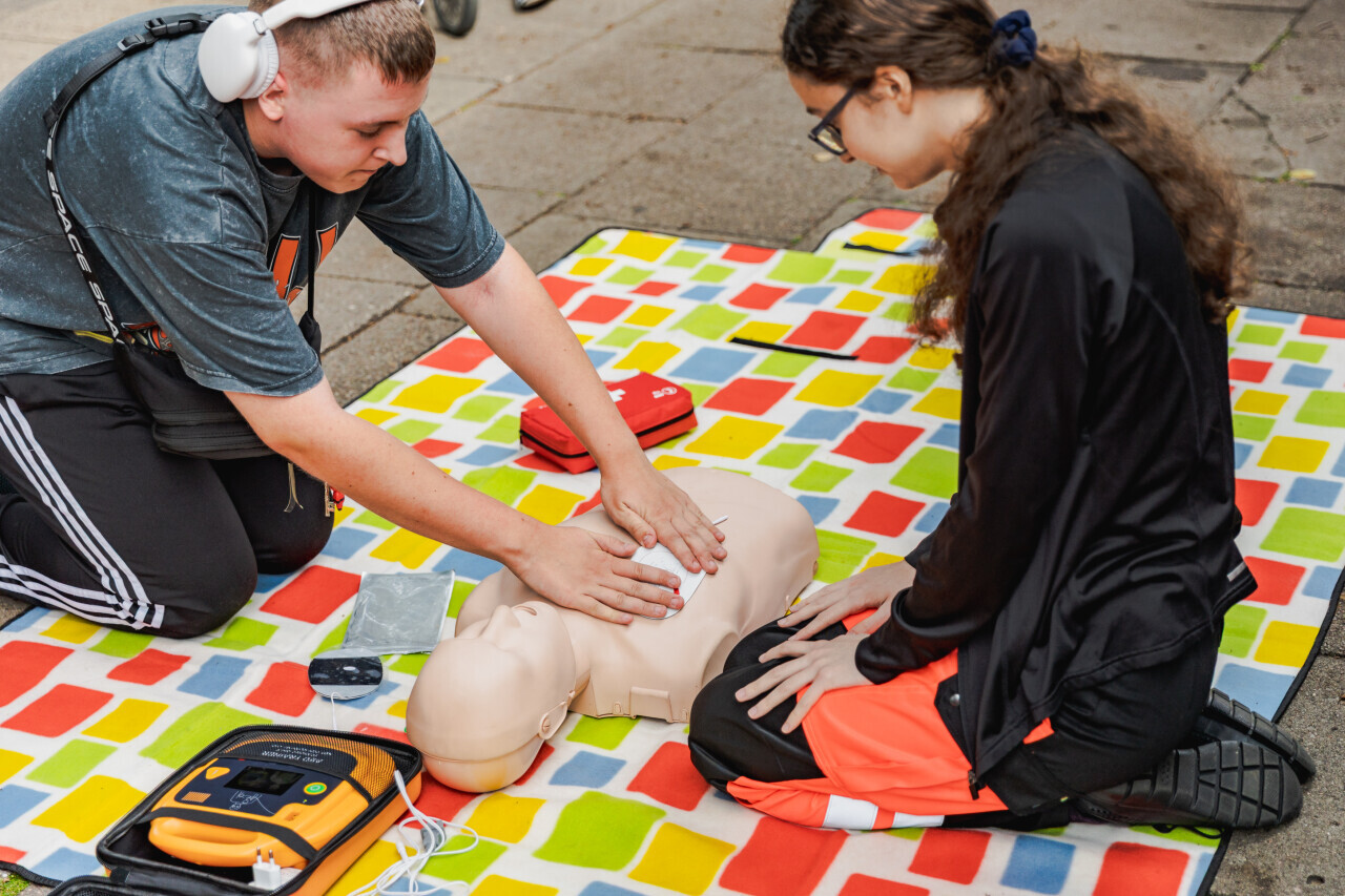 Gdańsk, pętla Jelitkowo. Jak używać defibrylatora i udzielać pierwszej pomocy.