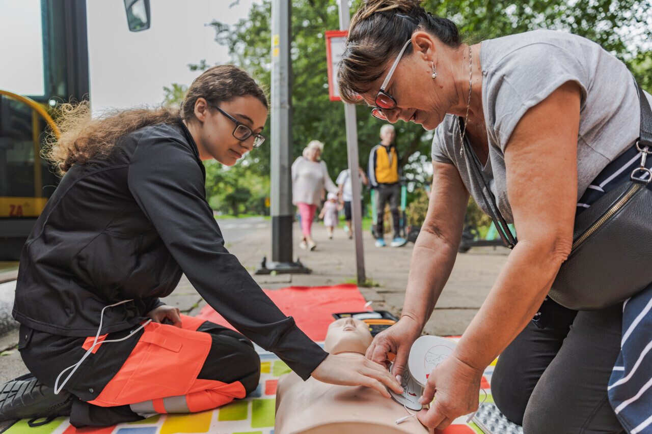 Gdańsk, pętla Jelitkowo. Jak używać defibrylatora i udzielać pierwszej pomocy.