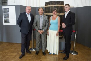 Otwarcie wystawy. "Jak w dawnym mieście wodę czerpano". Gdańsk, Muzeum Narodowe w Gdańsku przy ul. Toruńskiej. Nz. od lewej: Dyrektor Muzeum Narodowego w Gdańsku Wojciech Bonisławski, Prezes GIWK Sp. z o.o. Jacek Skarbek, pomysłodawczyni wystawy archeolog Renata Wiloch-Kozłowska, Z-ca Prezydenta Gdańska Piotr Grzelak