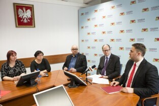 Urząd Miejski w Gdańsku. Spotkanie Zespołu Konsultacyjnego ds. Budżetu Obywatelskiego 2016, podczas którego przedstawiono Prezydentowi Gdańska Pawłowi Adamowiczowi rekomendacje zasad przyszłorocznego budżetu