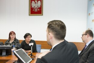 Urząd Miejski w Gdańsku. Spotkanie Zespołu Konsultacyjnego ds. Budżetu Obywatelskiego 2016, podczas którego przedstawiono Prezydentowi Gdańska Pawłowi Adamowiczowi rekomendacje zasad przyszłorocznego budżetu. Nz. Magdalena Wiszniewska i Beata Matyjaszczyk