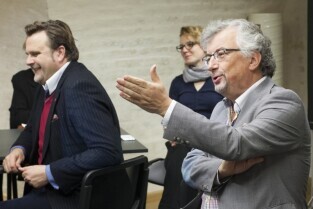 Gdańsk, Centrum Hewelianum. Warsztaty związane z opracowaniem Strategii Rozwoju Gdańska 2030 Plus. Nz. Prezes Radia Gdańsk Lech Parell i Dyrektor Radia Plus w Gdańsku Adam Hlebowicz (po prawej)