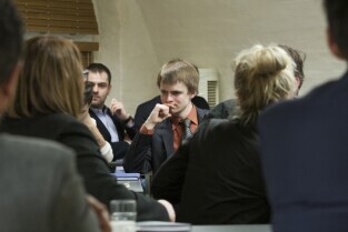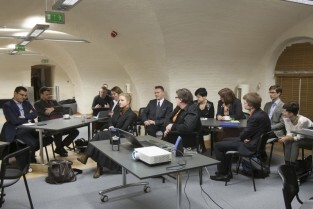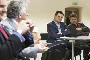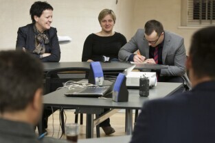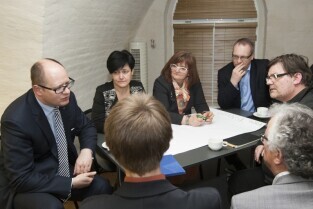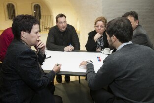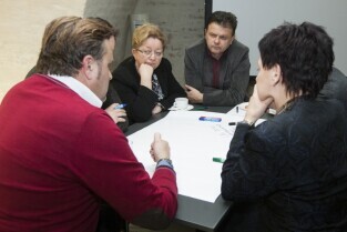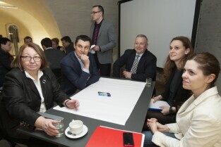 Gdańsk, Centrum Hewelianum. Warsztaty związane z opracowaniem Strategii Rozwoju Gdańska 2030 Plus. Nz. od lewej: Dyrektor Biura Prezydenta Gdańska ds. Kultury Anna Czekanowicz-Drążewska, Prezes Radia Gdańsk Lech Parell, Z-ca Prezydenta Gdańska Andrzej Bojanowski, Z-ca Dyrektora Wydziału Polityki Gospodarczej UMG Katarzyna Drozd-Wiśniewska