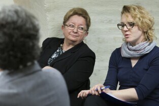 Gdańsk, Centrum Hewelianum. Warsztaty związane z opracowaniem Strategii Rozwoju Gdańska 2030 Plus. Nz. Z-ca Prezydenta Gdańska Ewa Kamińska i Dyrektor Radia Plus w Gdańsku Adam Hlebowicz
