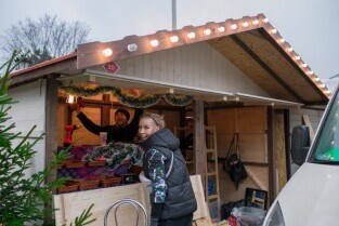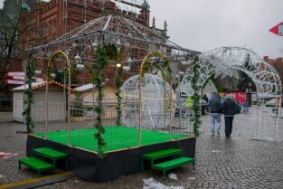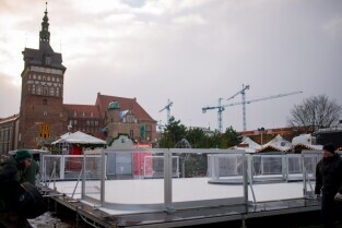 Jarmark Bożonarodzeniowy jeden dzień przed oficjalnym otwarciem. Gdańsk, Targ Węglowy