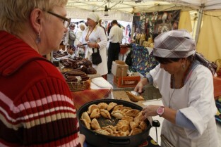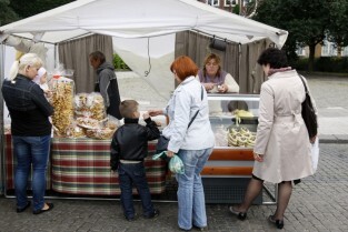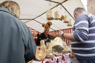 Gdańsk, Targ Węglowy. Jarmark Wileński - prezentacja muzyki i wyrobów litewskich, odbywający się w ramach festiwalu "Wilno w Gdańsku"