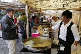 Gdańsk, Targ Węglowy. Jarmark Wileński - prezentacja muzyki i wyrobów litewskich, odbywający się w ramach festiwalu "Wilno w Gdańsku". Nz. Ambasador Litwy w Polsce Loreta Zakareviciene i Prezydent Gdańska Paweł Adamowicz
